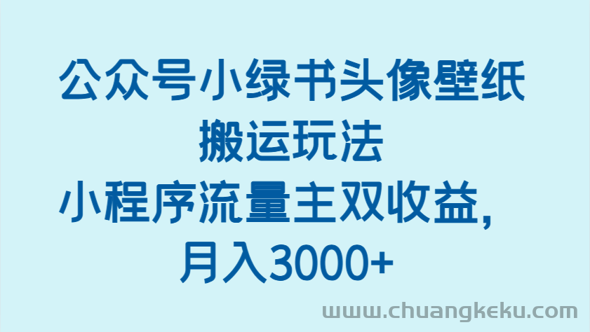 创客库 » 公众号小绿书头像壁纸搬运玩法,小程序流量主双收益,月入3000+