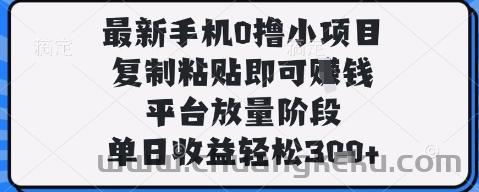 最新手机0撸小项目,复制粘贴即可挣钱,平台放量阶段,单日收益轻松3张+【揭秘】