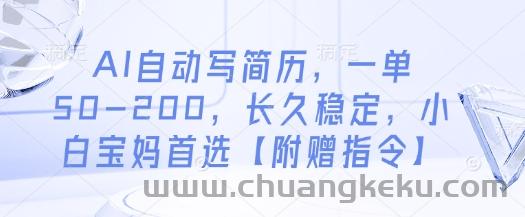 创客库 » AI自动写简历,一单50-200,长久稳定,小白宝妈首选【附赠指令】