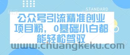 公众号引流精准创业项目粉,0基础小白都能轻松驾驭