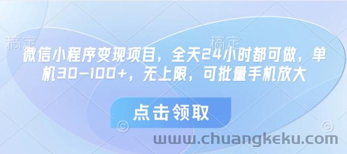 创客库 » 微信小程序变现项目,全天24小时都可做,单机30-100+,无上限,可批量手机放大