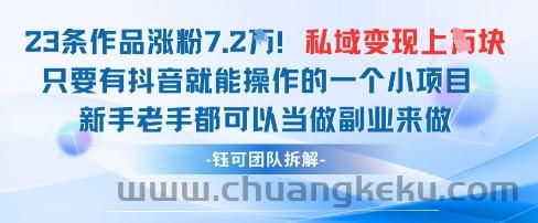 抖音私域项目23条作品涨粉7.2W,私域变现1W