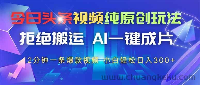 创客库 » (14612期)今日头条视频纯原创玩法,拒绝搬运,AI一键成片, 2分钟一条爆款视频,…