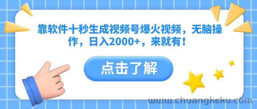 靠软件十秒生成视频号爆火视频,无脑操作,日入2000+,来就有!