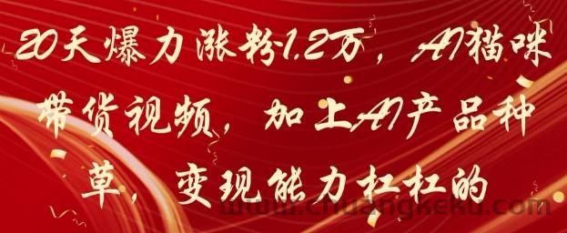 创客库 » 20天爆力涨粉1.2W,AI猫咪带货视频,加上AI产品种草,变现能力杠杠的