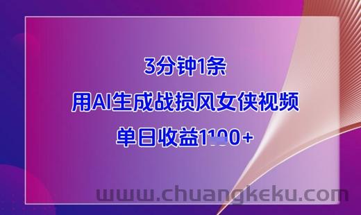 3分钟1条,用AI生成战损风女侠视频,单日收益1k+