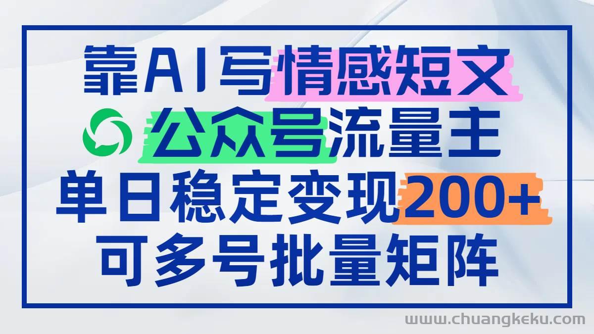 创客库 » (14712期)靠AI写情感短文,公众号流量主日赚200+,可多号批量矩阵