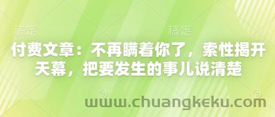 创客库 » 付费文章:不再瞒着你了,索性揭开天幕,把要发生的事儿说清楚