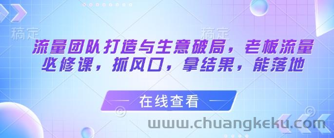 创客库 » 流量团队打造与生意破局,老板流量必修课,抓风口,拿结果,能落地