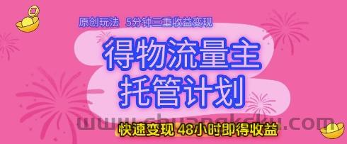 得物流量主托管计划,原创玩法,5分钟三重收益变现,快速变现,48小时即得收益【揭秘】
