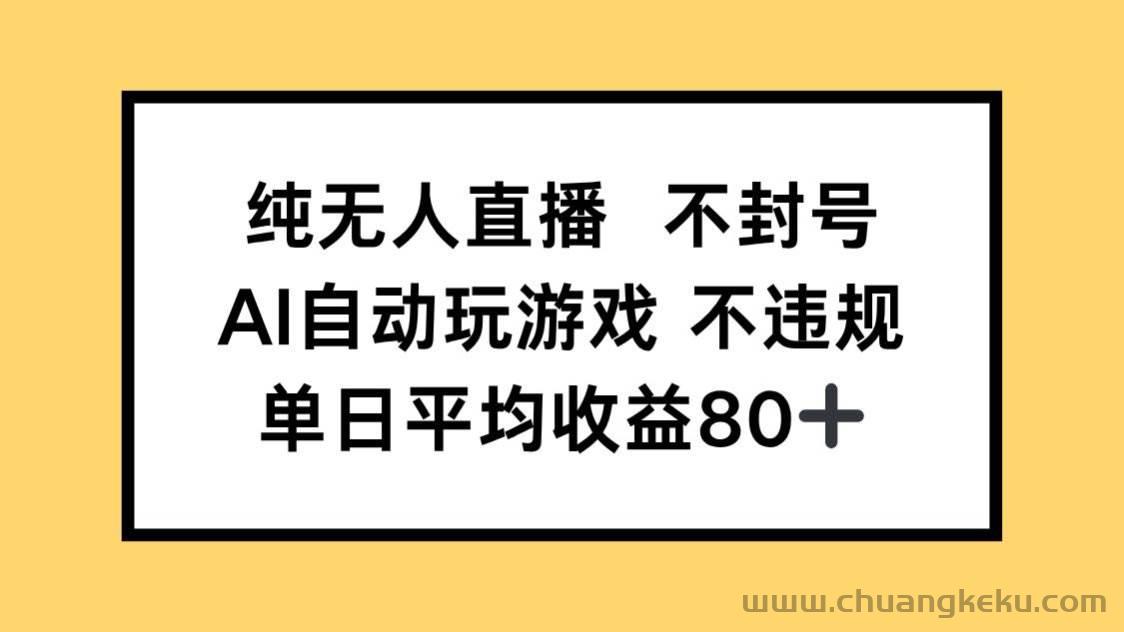 纯无人直播不封号,AI自动玩游戏,单日收益80+