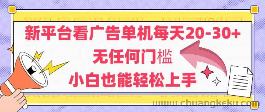 创客库 » (14847期)新平台看广告单机每天20-30,无任何门槛,安卓手机即可,小白也能轻松上手