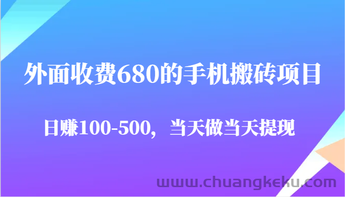 创客库 » 外面收费680的手机搬砖项目,日赚100-500完全没有问题,当天做当天提现