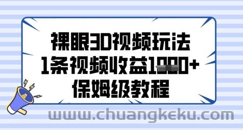 创客库 » 裸眼3D视频玩法,1条视频收益几张,保姆级教程