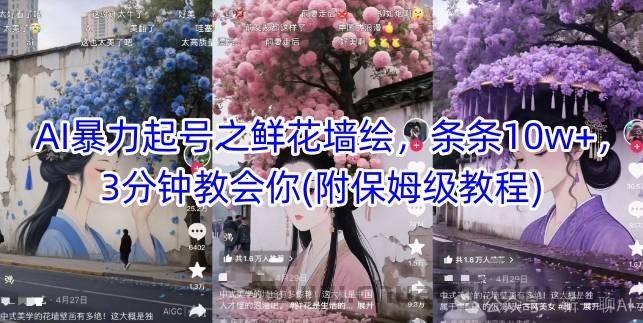 AI暴力起号之鲜花墙绘,条条10w+,3分钟教会你(附保姆级教程)