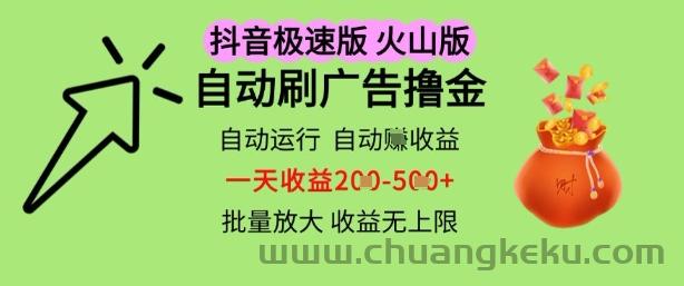 创客库 » 抖音火山极速商城自动刷广告撸金,自动运行挣收益,一天稳定2-5张,多机多挣,收益无上限【揭秘】