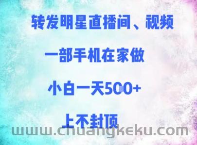 转发明星直播间、视频,一部手机在家做,小白一天多张,上不封顶