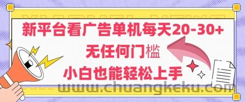 创客库 » 新平台看广告单机每天20-30,无任何门槛,安卓手机即可,小白也能轻松上手