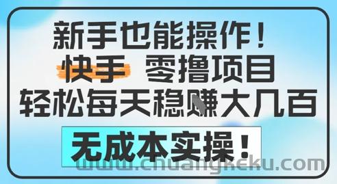 新手也能操作,快手零撸挣米,轻松每天挣2-5张,完全无成本