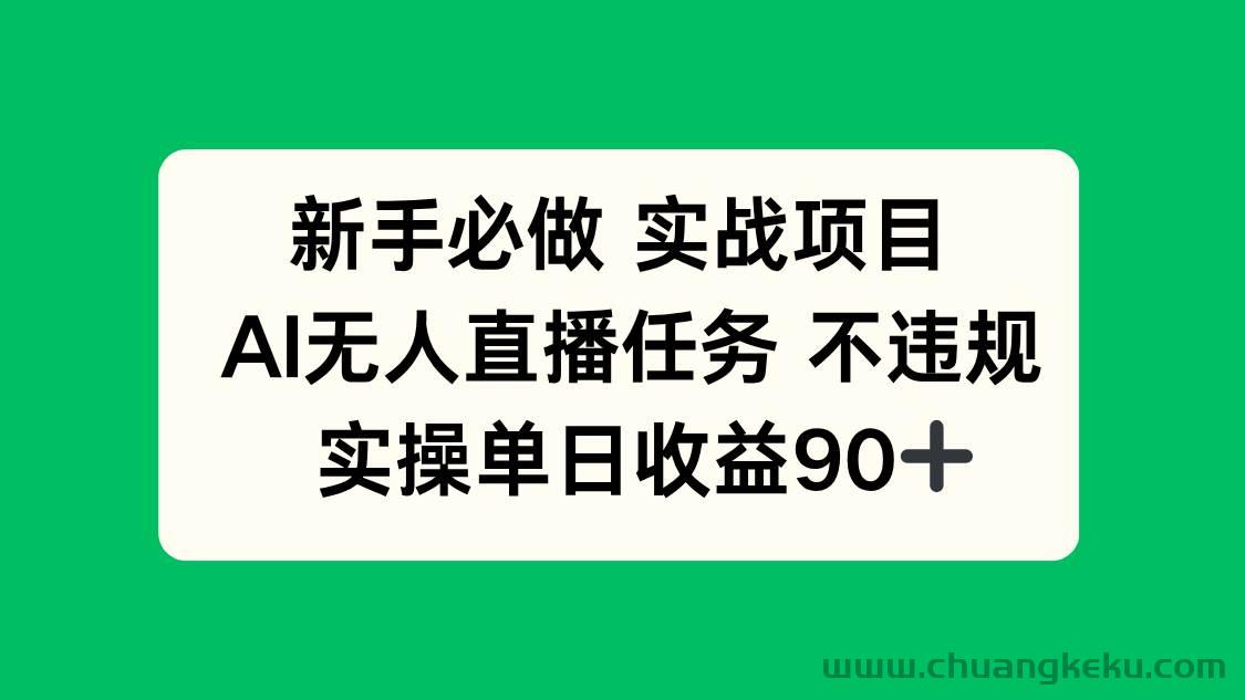 新手必做实战项目,AI无人直播任务不违规,实操单日收益90+