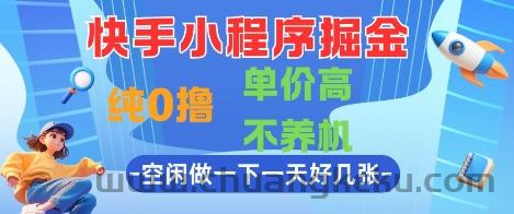快手小程序掘金,纯0撸,单价高不养机 利用空闲时间做一做,一天好几张【揭秘】