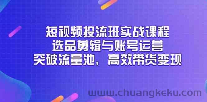 短视频投流班实战课程,选品剪辑与账号运营,突破流量池,高效带货变现