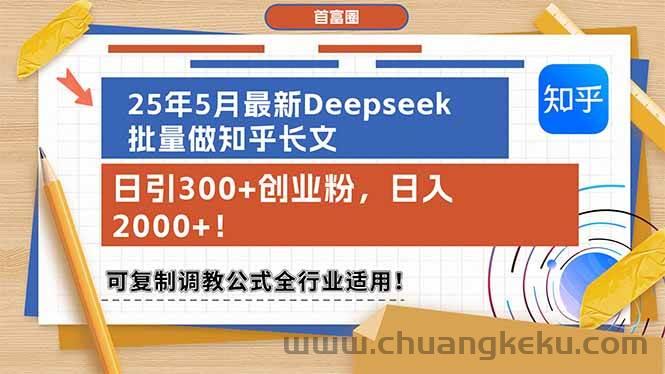 创客库 » (14956期)25年5月最新Deepseek批量做知乎长文,日引300+创业粉,日入2000+!可复…