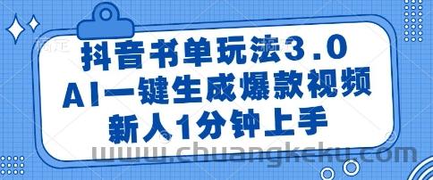 抖音书单玩法3.0,AI一键生成爆款视频,新人1分钟上手【揭秘】