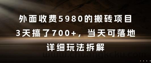 外面收费5980的搬砖项目,3天搞了7张+,当天可落地,详细玩法拆解【揭秘】