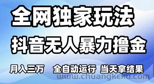 全网独家玩法,抖音无人暴力撸金,月入3W,全自动运行,当天拿结果,可矩阵【揭秘】