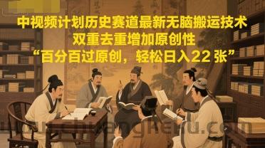 创客库 » 中视频计划历史赛道最新无脑搬运技术,双重去重增加原创性,百分百过原创,轻松日入2张