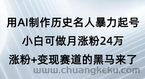 创客库 » 用AI制作历史名人暴力起号,小白可做月涨粉24W涨粉+变现赛道的黑马来了