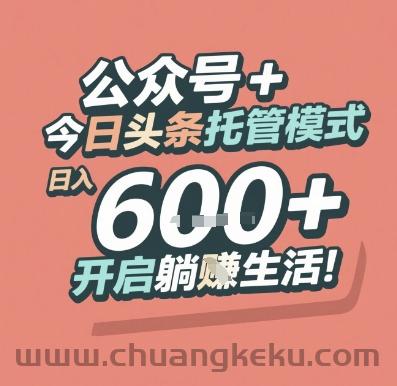 创客库 » 公众号 + 今日头条托管模式,日入 6张 + 开启躺挣生活【揭秘】