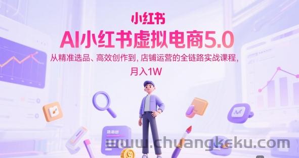 AI小红书虚拟电商5.0,从精准选品、高效创作到,店铺运营的全链路实战课程,月入1W
