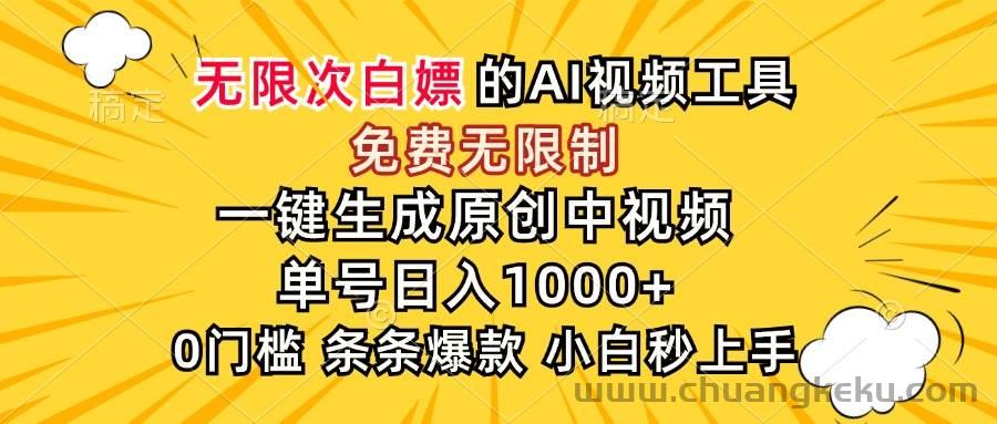 创客库 » (15231期)超强大的AI工具,免费无限制,一键生成原创中视频,单号日入1000+,小…
