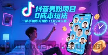 抖音男粉项目0成本玩法,一部手机即可操作,日均4张+,时间自由