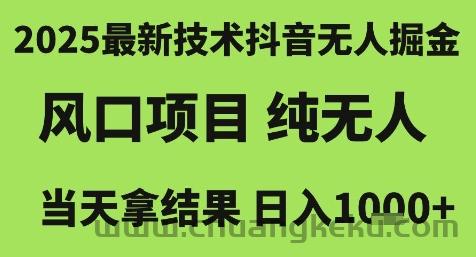 2025最新技术抖音无人掘金,风口项目,纯无人,当天拿结果日入1k+【揭秘】