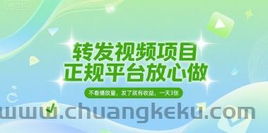 创客库 » 转发视频项目,正规平台放心做,不看播放量,无粉丝要求,发了就有收益,一天3张【揭秘】