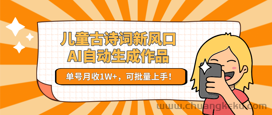创客库 » 儿童古诗词新风口!AI自动生成作品,单号月收1W+,可批量上手!