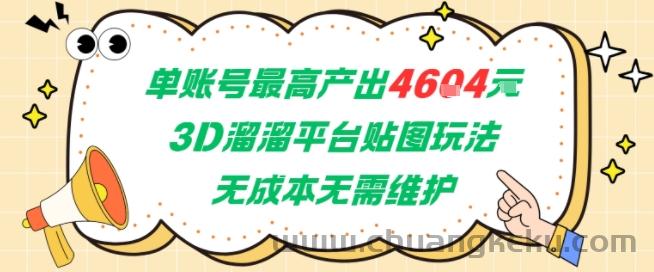 单账号最高产出4604,3D溜溜平台贴图玩法,无成本无需维护,兼职副业最稳项目