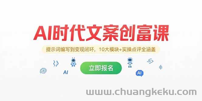 创客库 » (15286期)AI时代文案创富课,提示词编写到变现闭环,10大模块+实操点评全涵盖