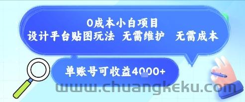 0成本小白项目,设计平台贴图玩法,无需维护,无需成本,单账号单月可产生收益4k+