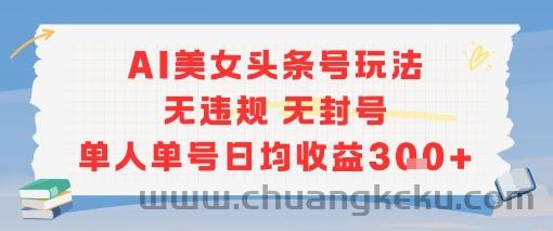 创客库 » AI美女头条号玩法无违规无封号单人单号日均收益3张