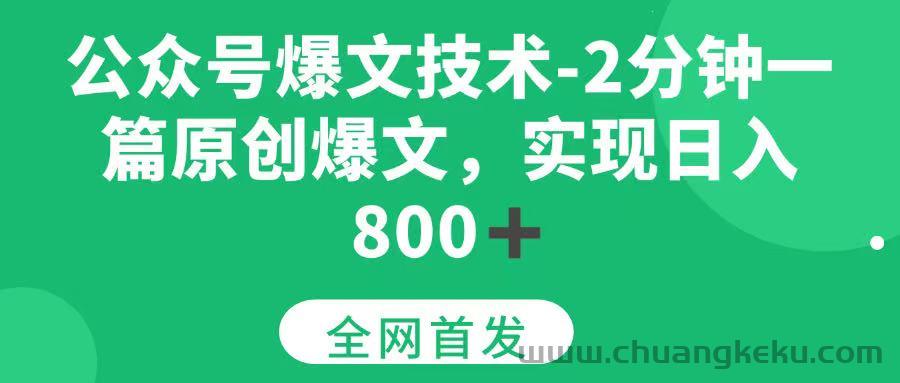 创客库 » (15329期)公众号爆文技术,2分钟一篇原创爆文, 日入800+