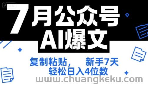 创客库 » 7月公众号AI爆文,复制粘贴,新手7天轻松日入4位数,SOP 技术文档 全网最全【附工具指令】