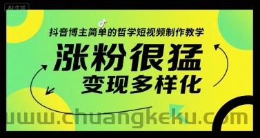 抖音博主简单的哲学短视频制作教学,涨粉很猛,变现多样化