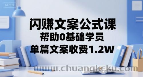 闪赚文案公式课,帮助0基础学员,单篇文案收费1.2W