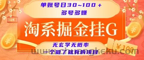 淘系掘金挂G项目,单账号日收益30~100+,多号多得,一个做了就有的项目【揭秘】
