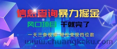 创客库 » 信息查询暴力掘金,一天三条视频,轻松变现四位数,风口项目干就完了【揭秘】