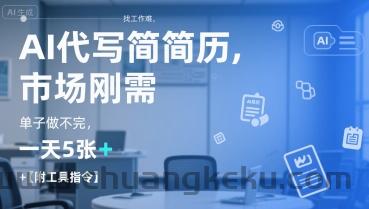 创客库 » AI代写简历,找工作难,市场刚需,单子做不完,一天5张+【附工具指令】